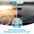 By blocking harmful UV rays, the sunshade helps preserve the condition of your dashboard, steering wheel, and interior upholstery. It prevents sun damage, fading, and cracking, extending the lifespan of your car's interior components.